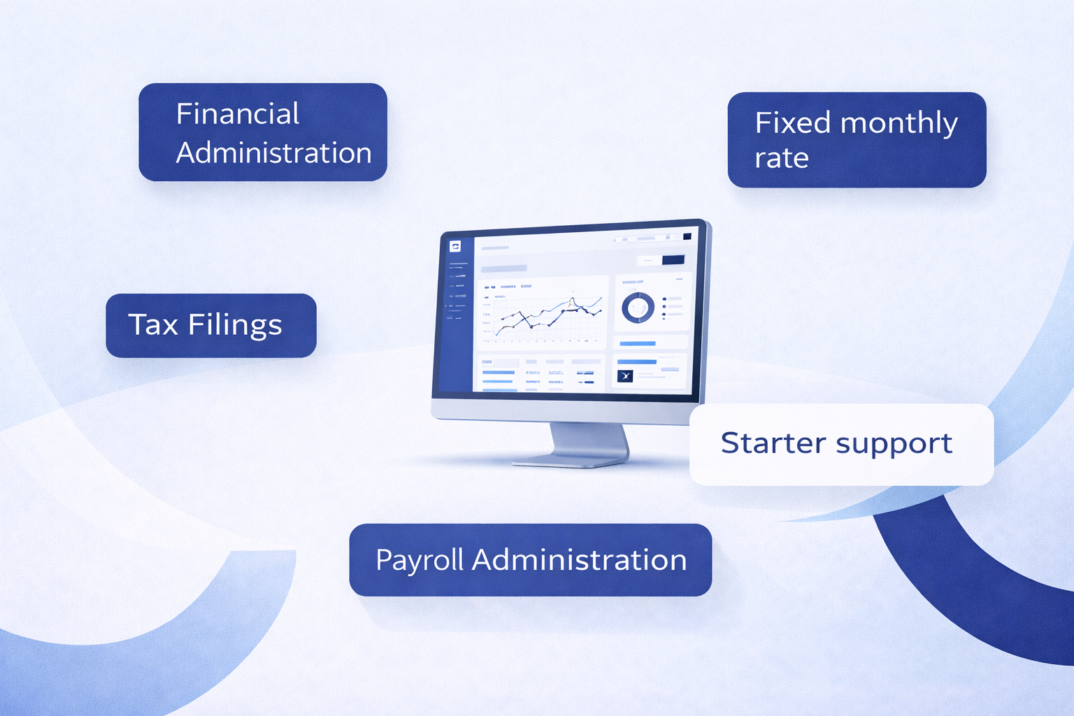 Administration, VAT returns, annual accounts, and tax advice—personalized, digital, and with fixed rates. For freelancers, SMEs, private limited companies, and individuals.